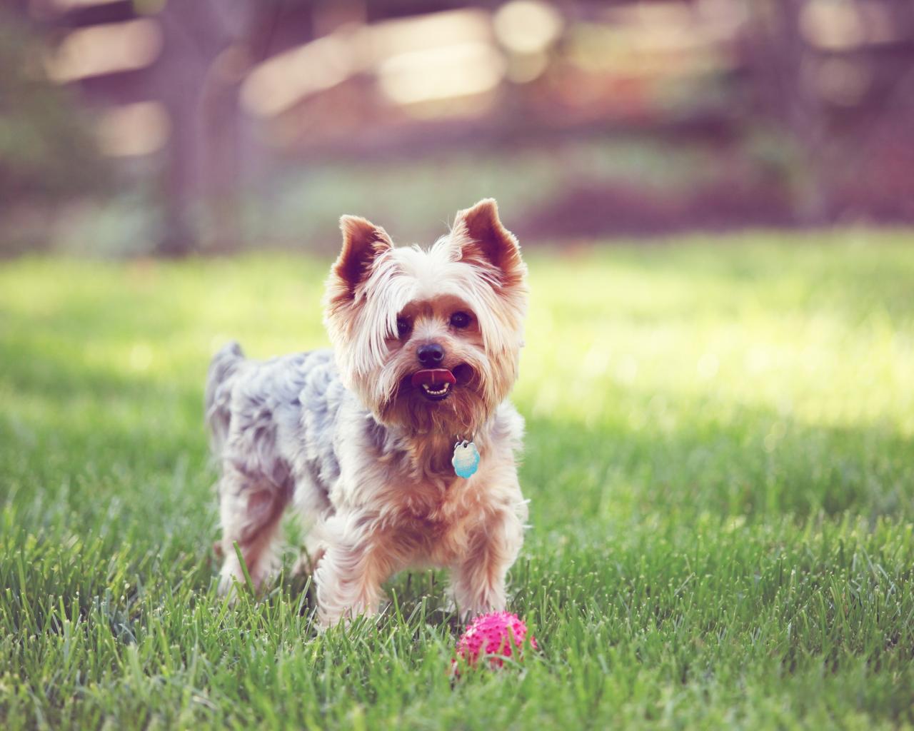 Wallpaper Terrier with the ball on the grass