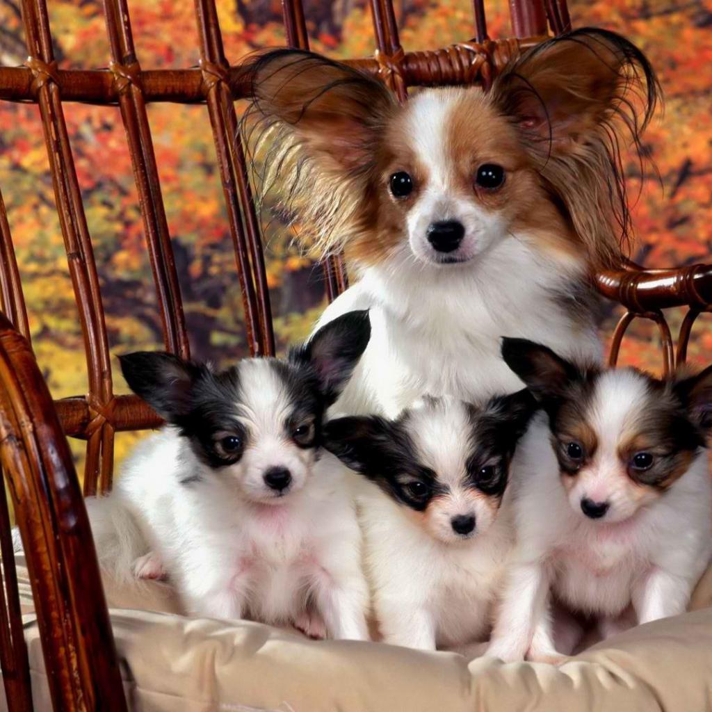 Wallpaper French dog Papillon with puppies