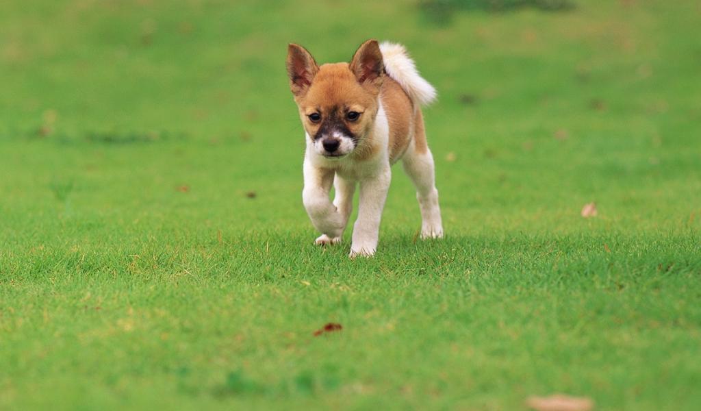 Wallpaper Puppy runs across the grass