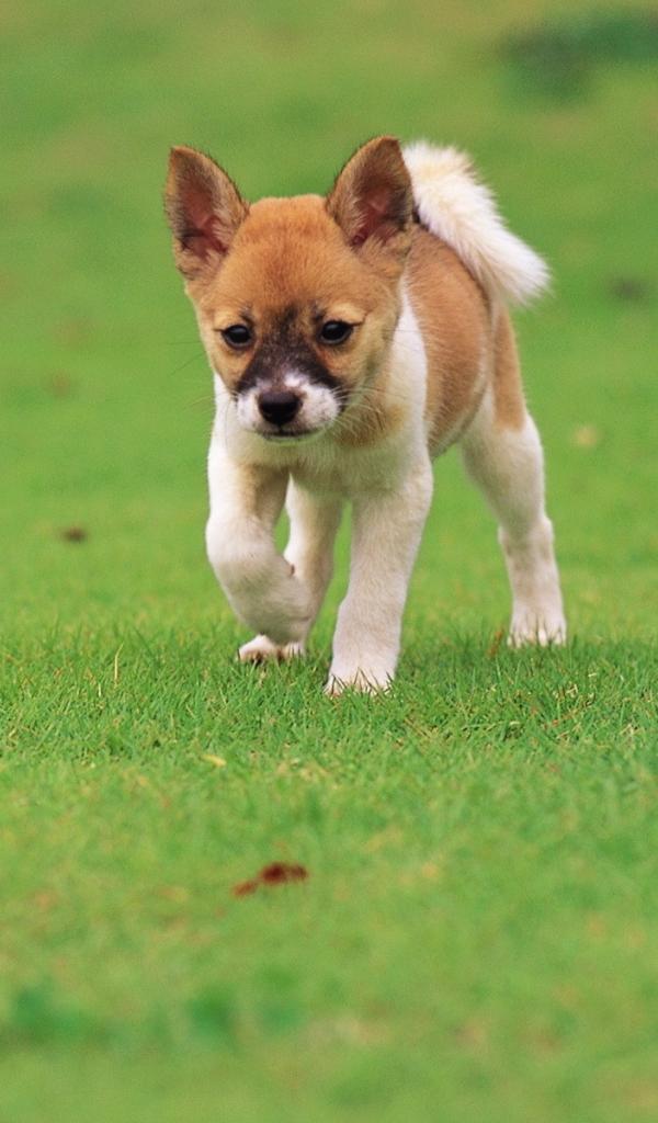 Wallpaper Puppy runs across the grass