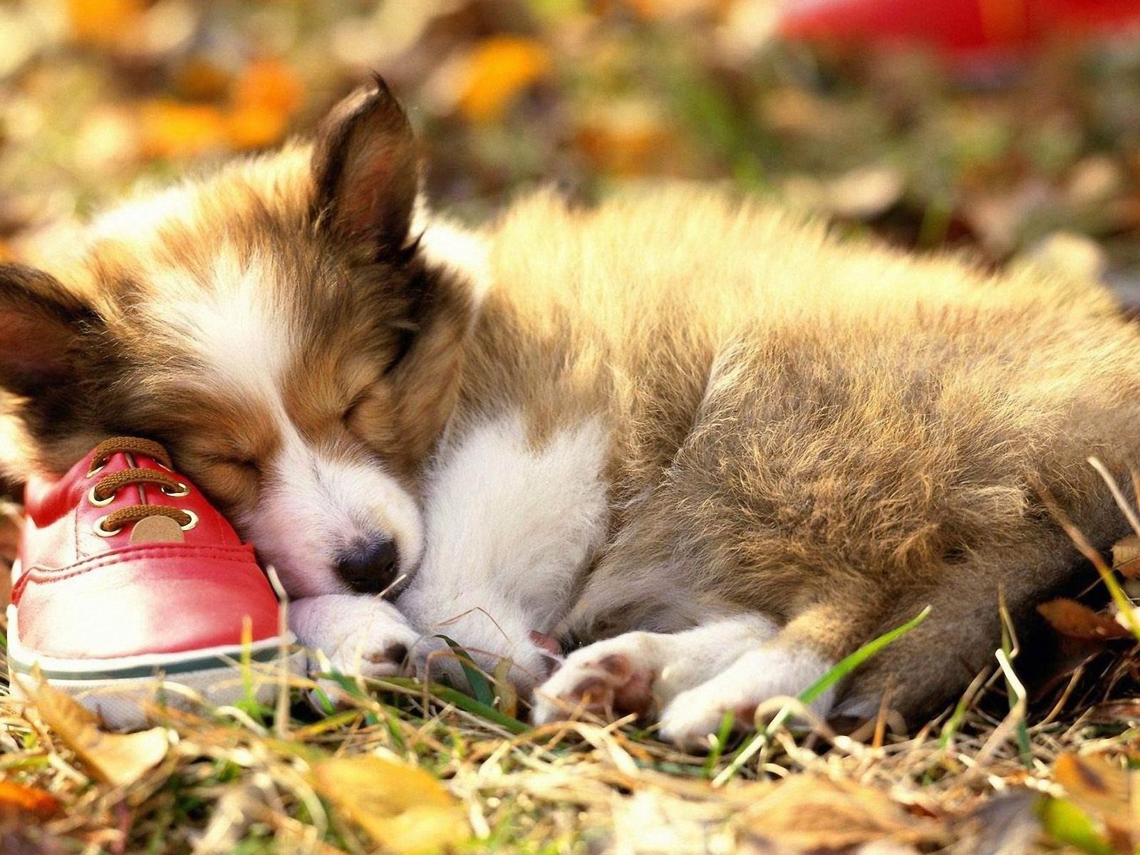 Wallpaper The puppy is sleeping on the Shoe