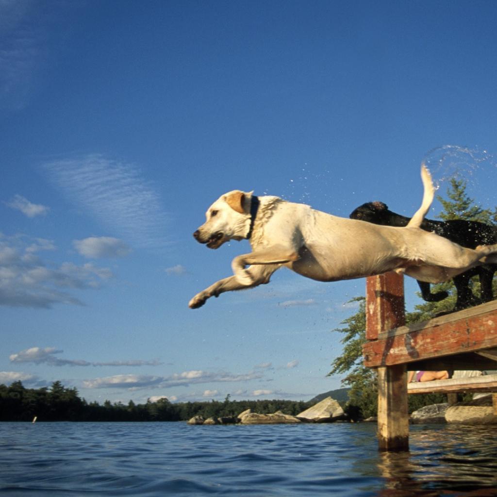 Wallpaper Dogs jump into the water