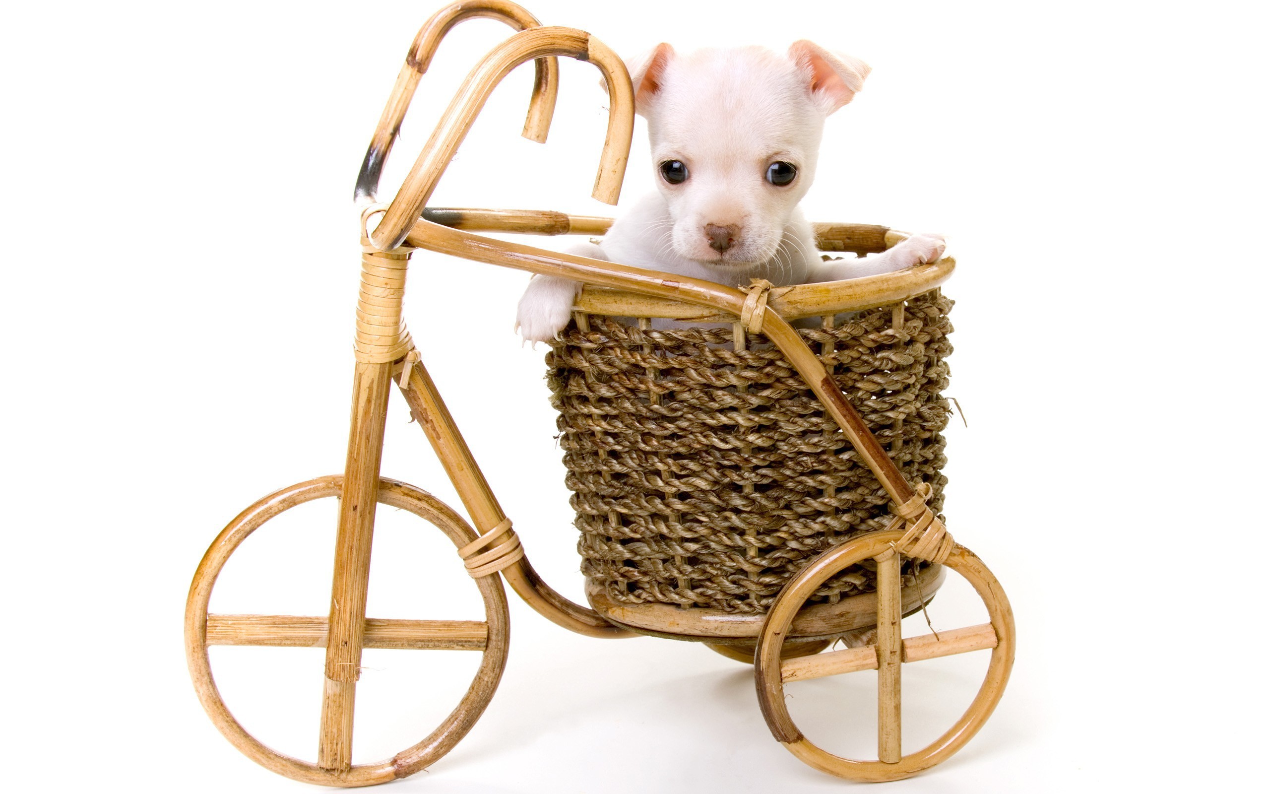Wallpaper White puppy in a basket