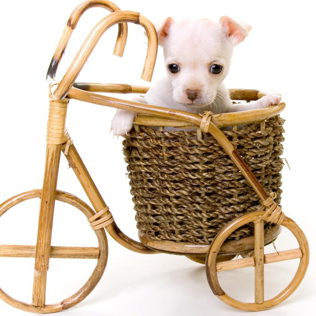 Wallpaper White puppy in a basket
