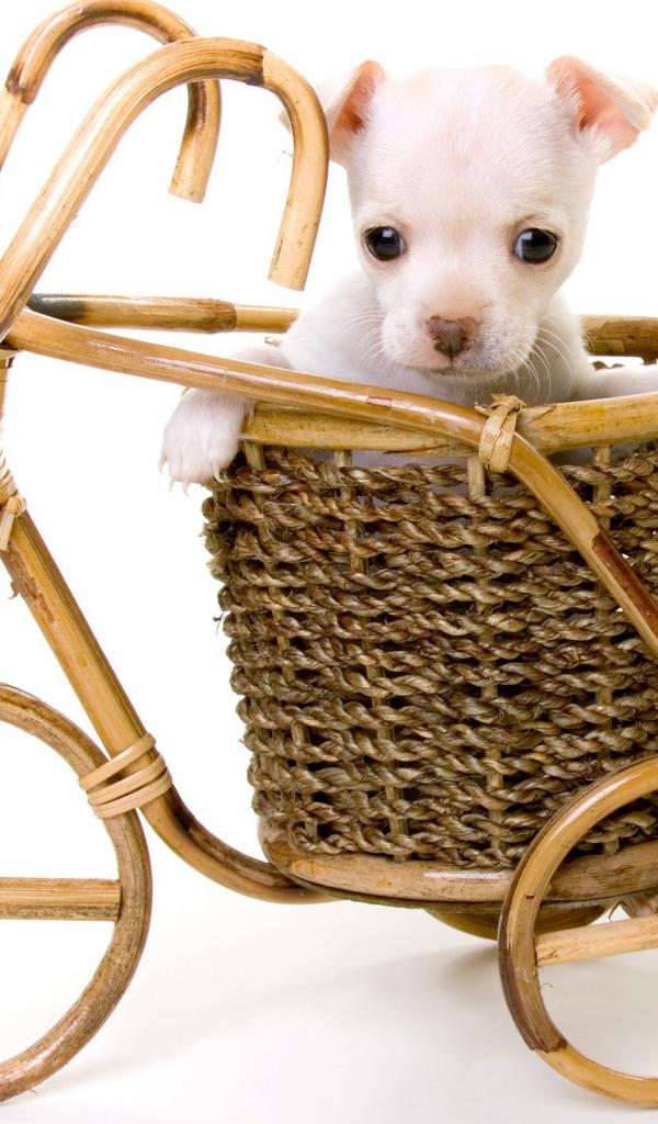Wallpaper White puppy in a basket