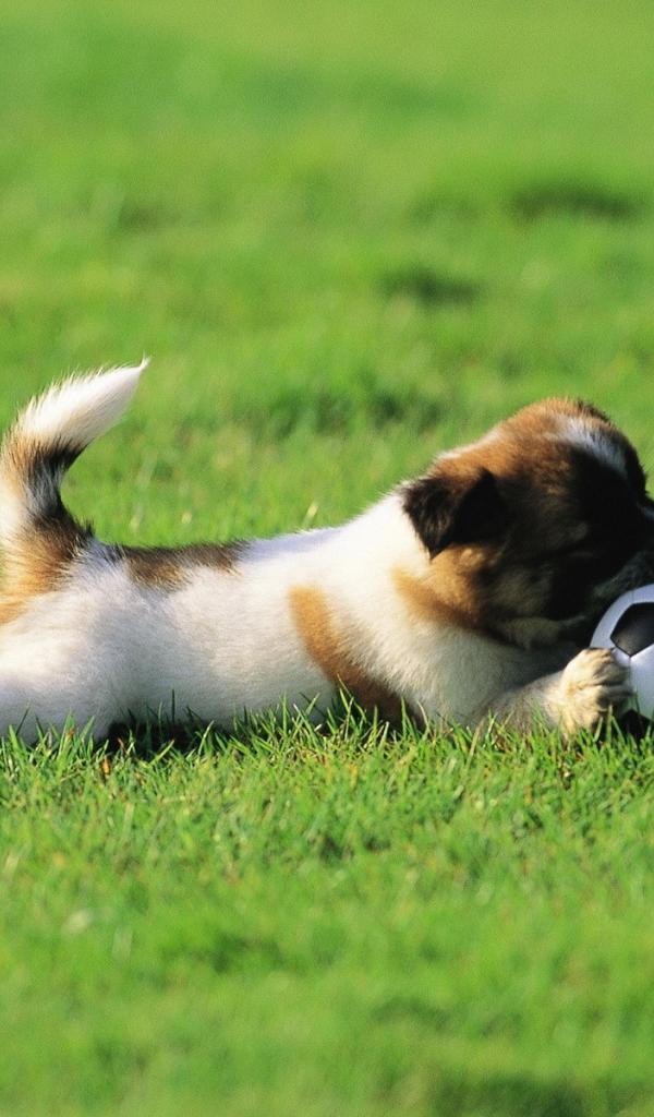 Wallpaper Puppy plays with the ball