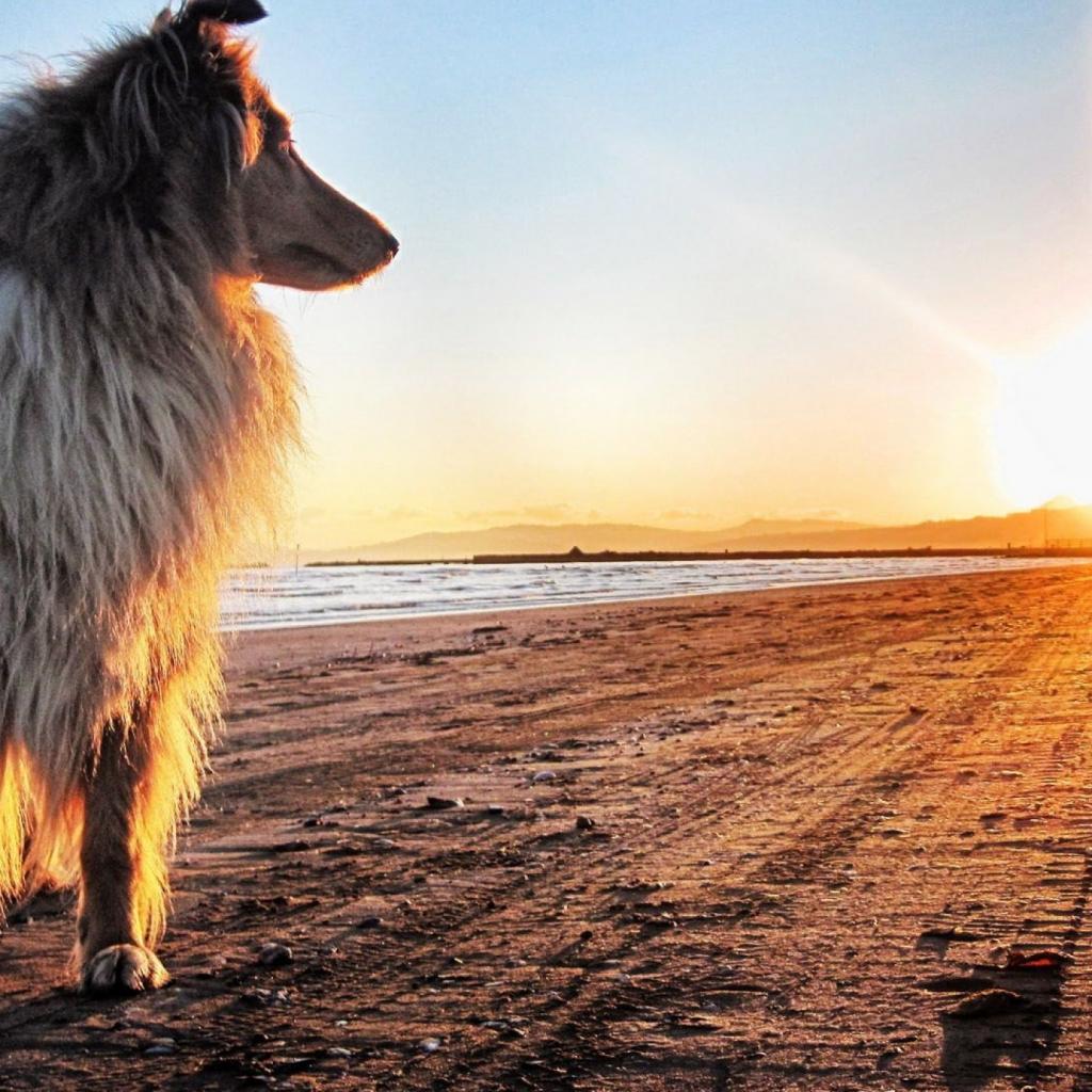 Wallpaper The dog looks at the sunset