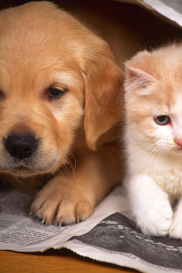 Wallpaper Kitten and puppy
