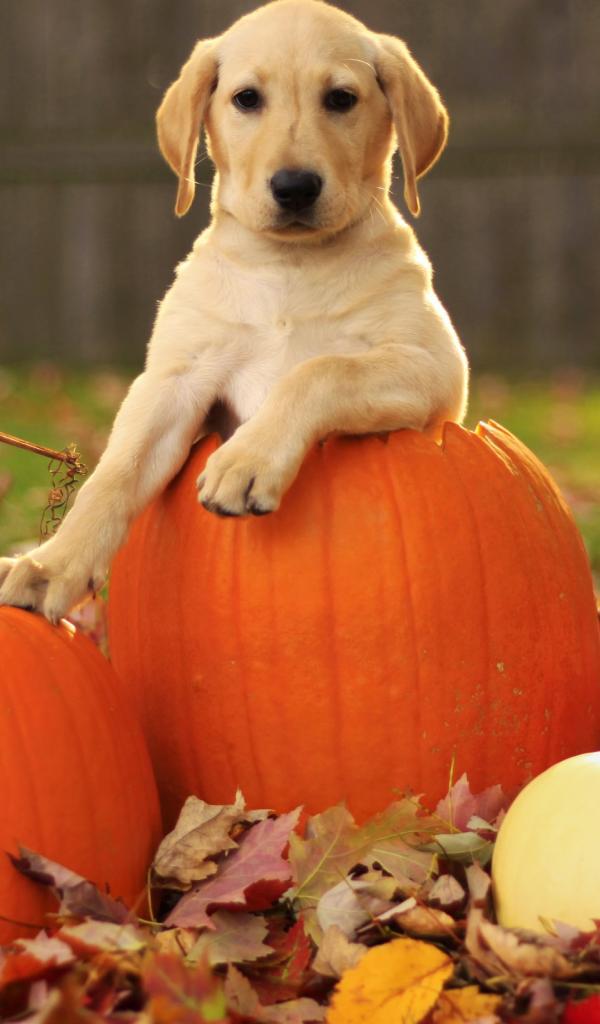 Wallpaper Dog sits in a pumpkin
