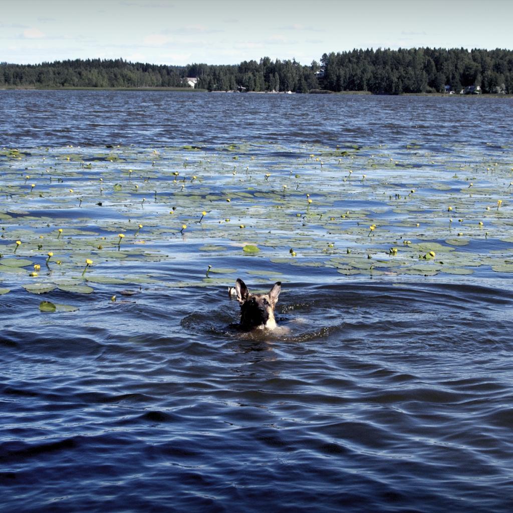 Wallpaper Dog boat on the lake
