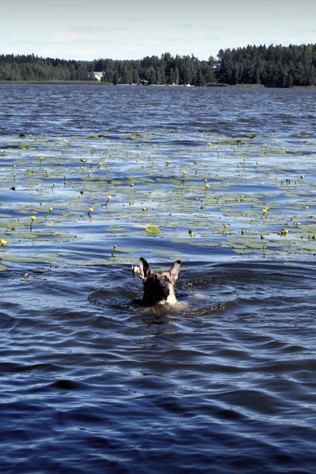 Wallpaper Dog boat on the lake