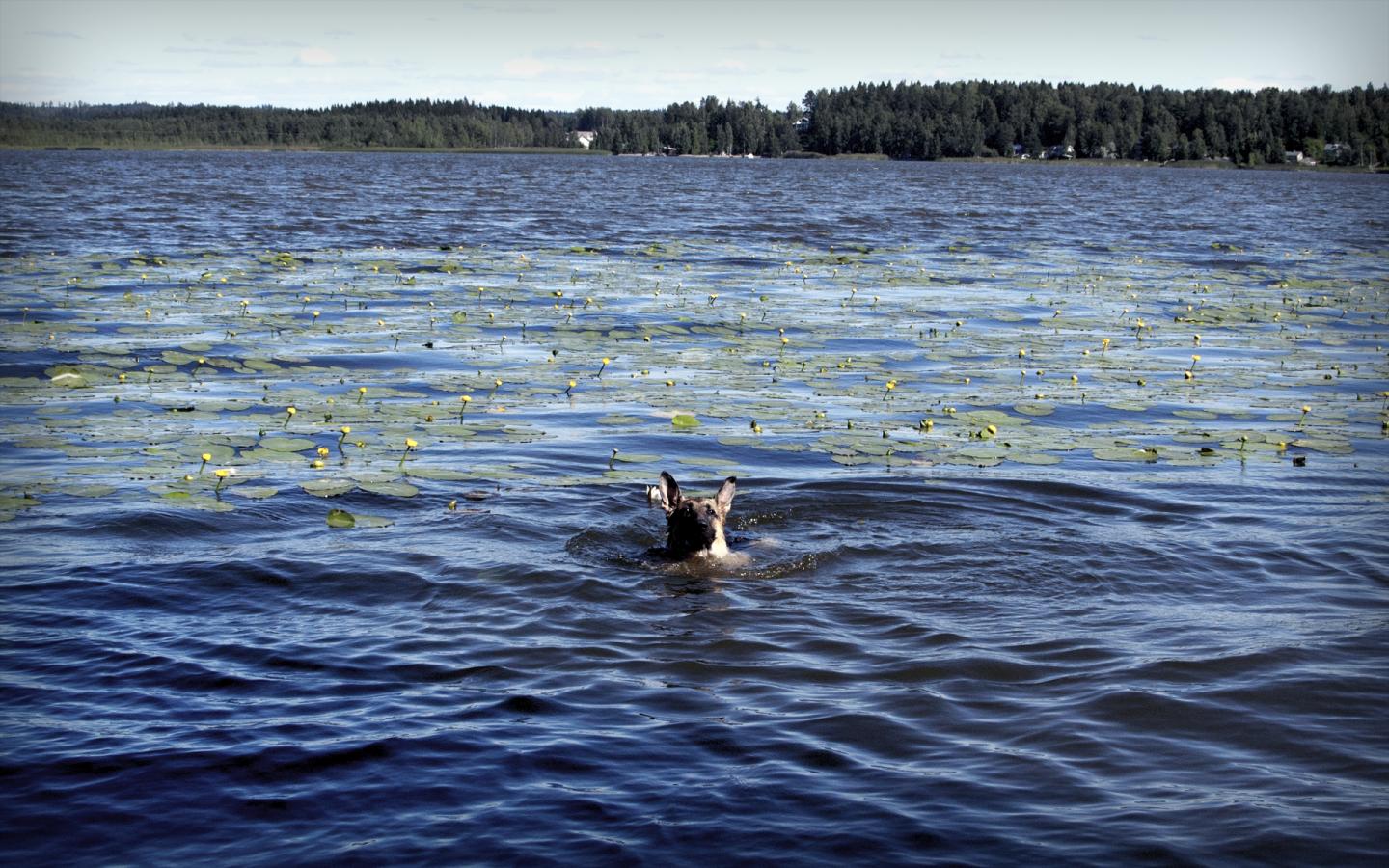 Wallpaper Dog boat on the lake