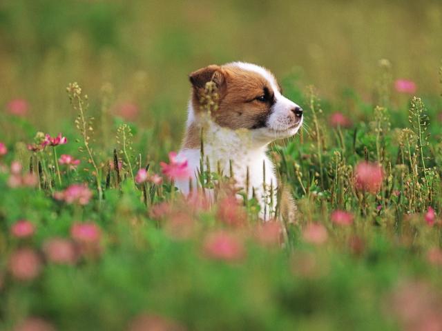 Wallpaper Puppy sitting in the grass
