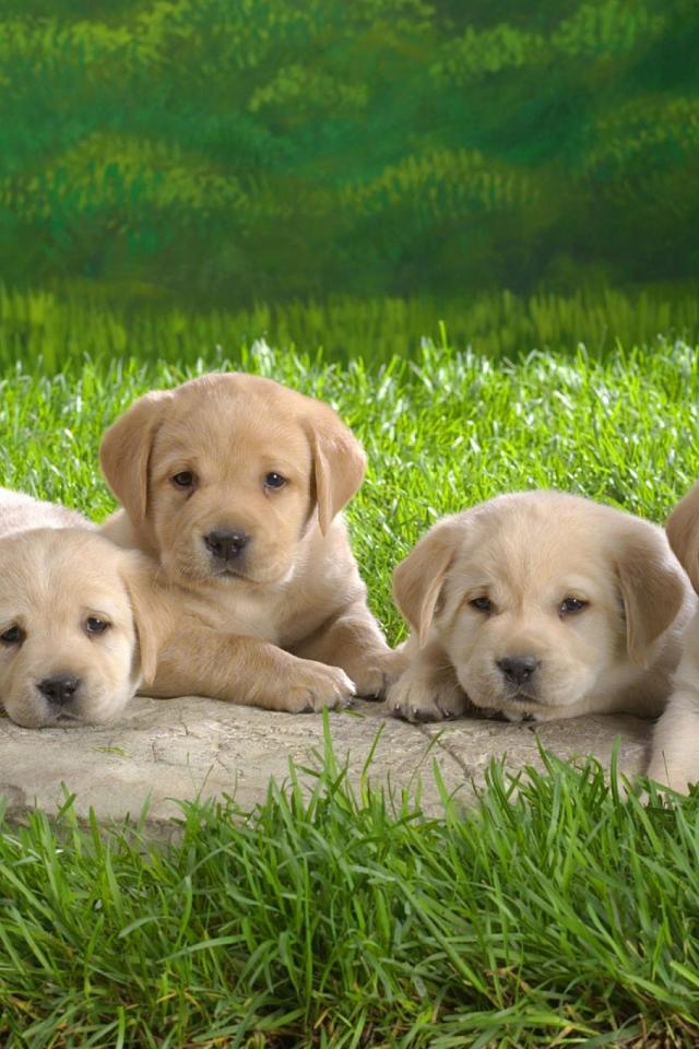 Wallpaper Five white puppies