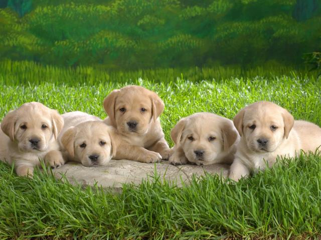 Wallpaper Five white puppies