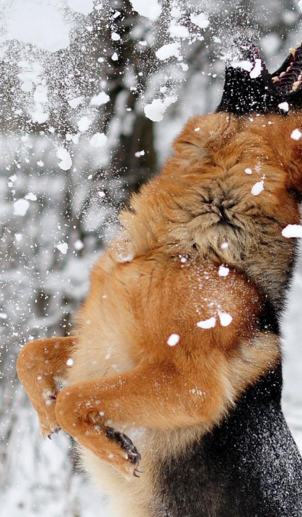 Wallpaper Dog catches the snow