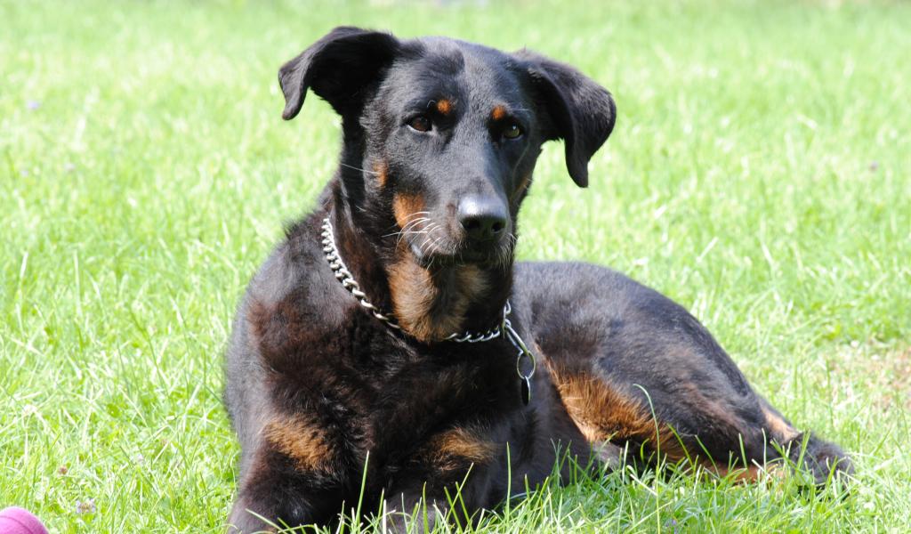 Wallpaper Beauceron lying beautiful in the yard