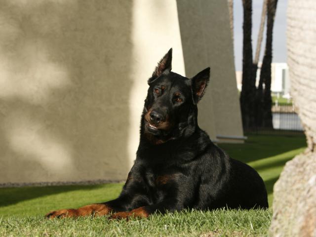 Wallpaper Adult beautiful Beauceron lies on lawn