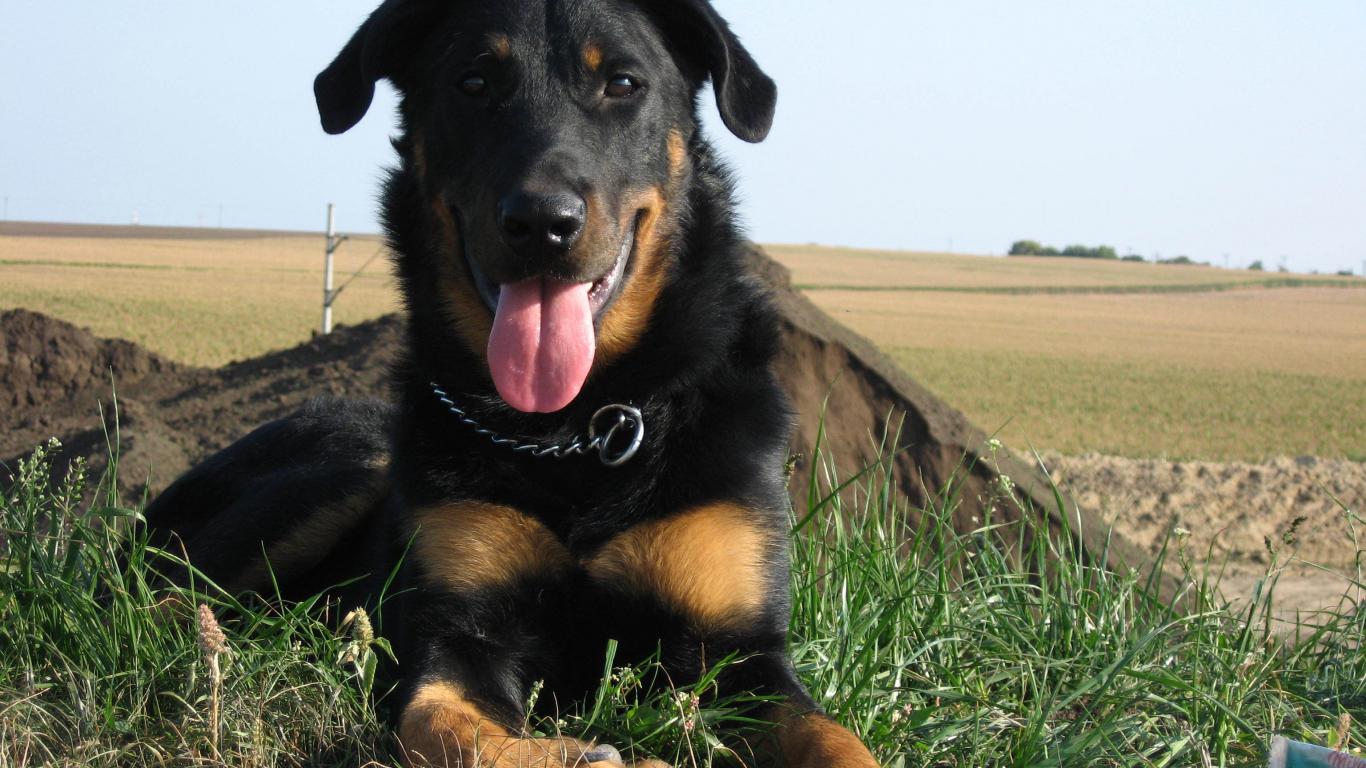 Wallpaper Beautiful Beauceron lying on field background