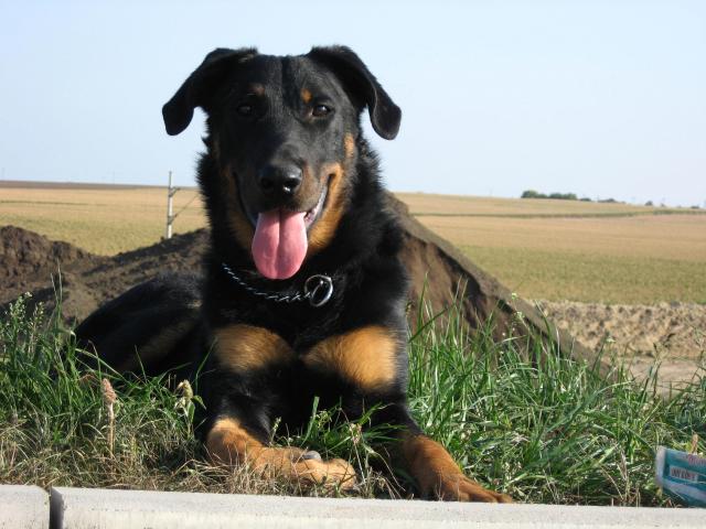 Wallpaper Beautiful Beauceron lying on field background