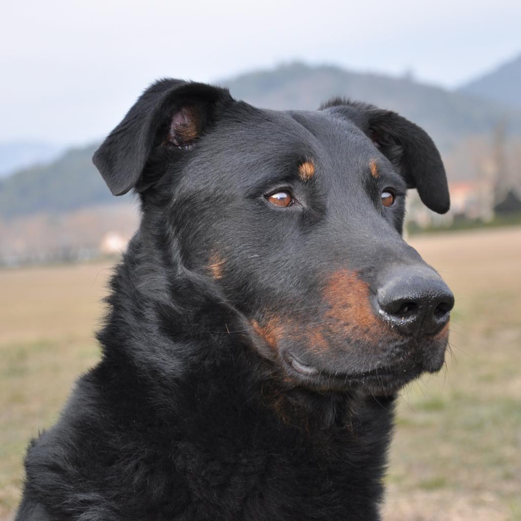 Wallpaper Adult beautiful Beauceron lies on lawn