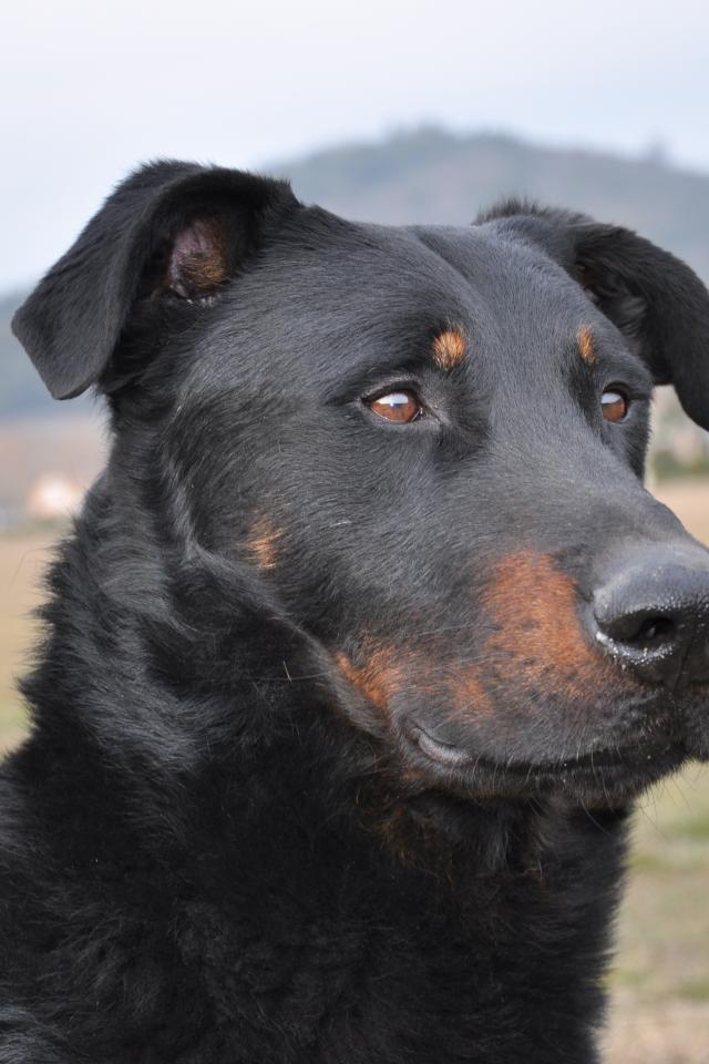 Wallpaper Adult beautiful Beauceron lies on lawn