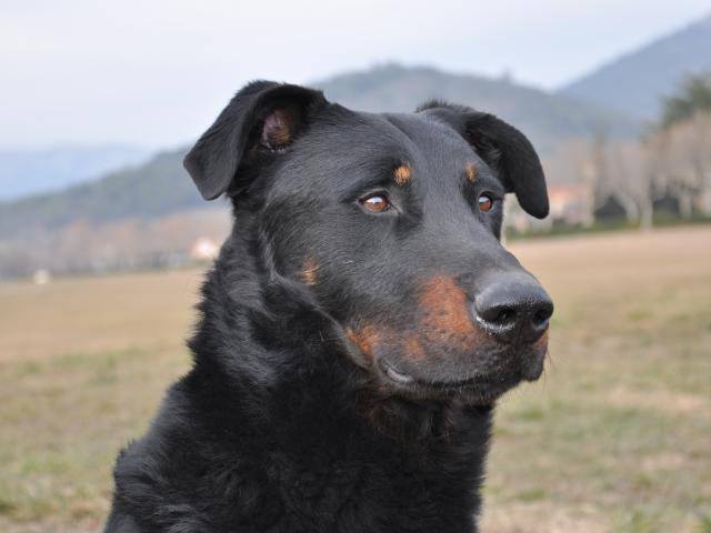 Wallpaper Adult beautiful Beauceron sitting in the snow