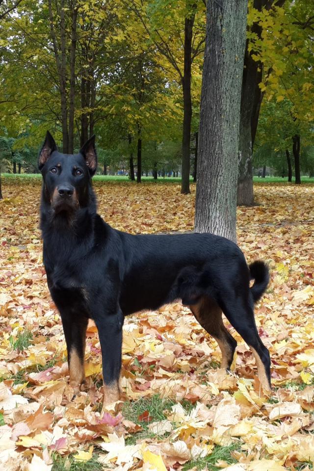 Wallpaper Beauceron in beautiful autumn forest