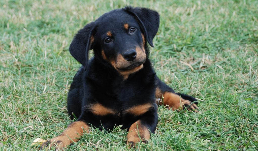 Wallpaper Beautiful Beauceron puppy lying on the lawn