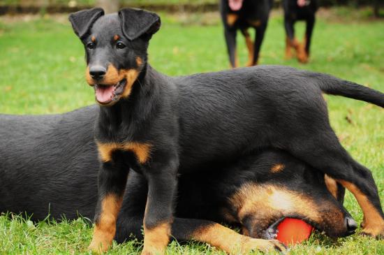 Wallpaper Beautiful Beauceron puppy lying on the lawn