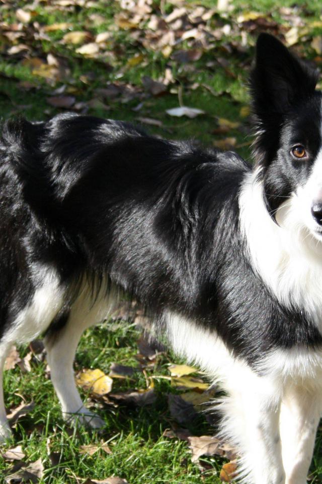 Wallpaper Border Collie walking on autumn leaves