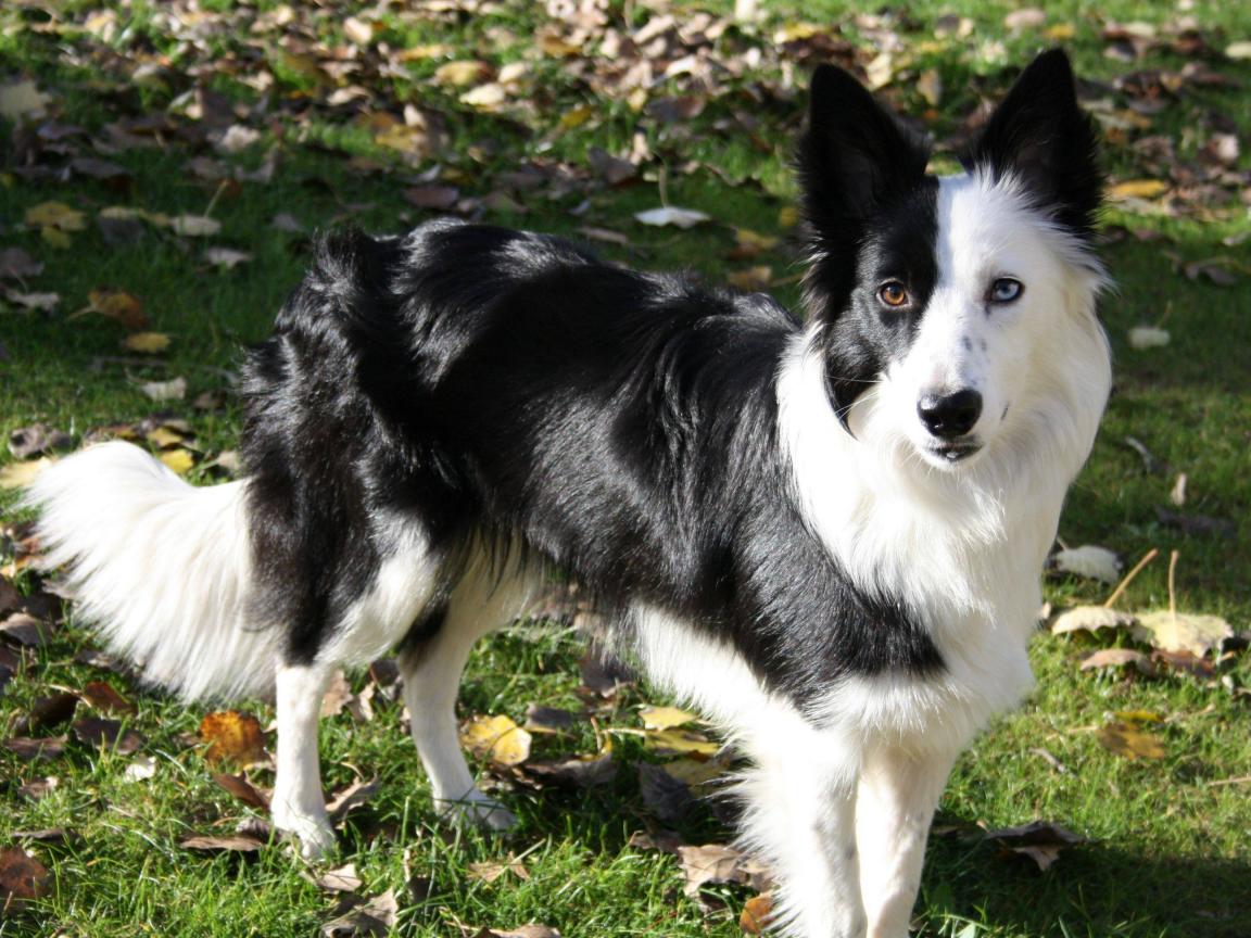 Wallpaper Border Collie walking on autumn leaves