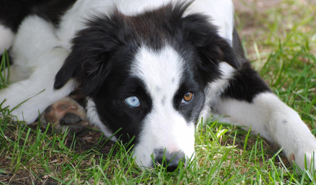 Wallpaper Border Collie with different eyes lying on the grass