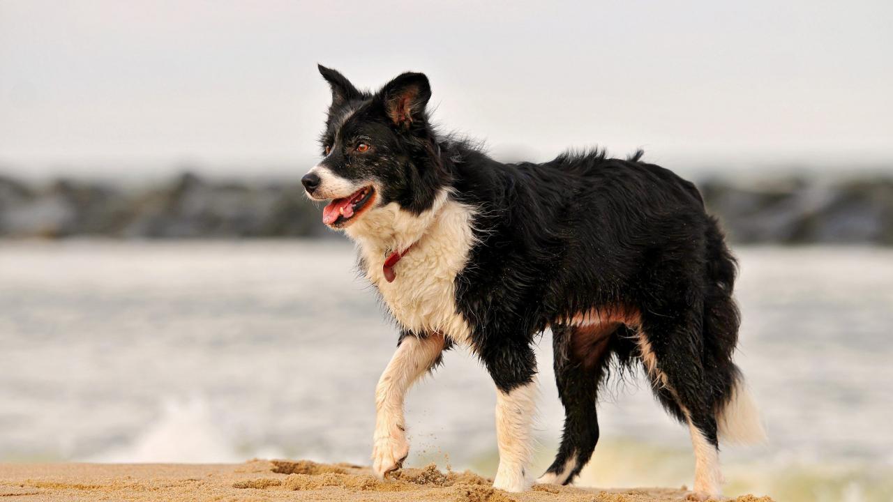 Wallpaper Beautiful Border Collie soiled in sand