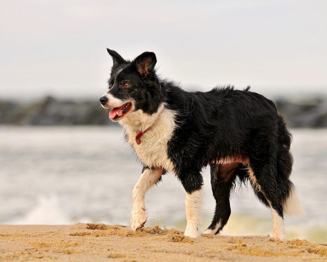 Wallpaper Beautiful Border Collie soiled in sand