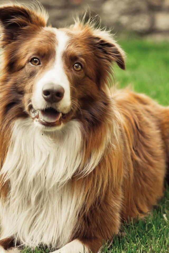 Wallpaper Redhead beautiful border collie lying on the grass