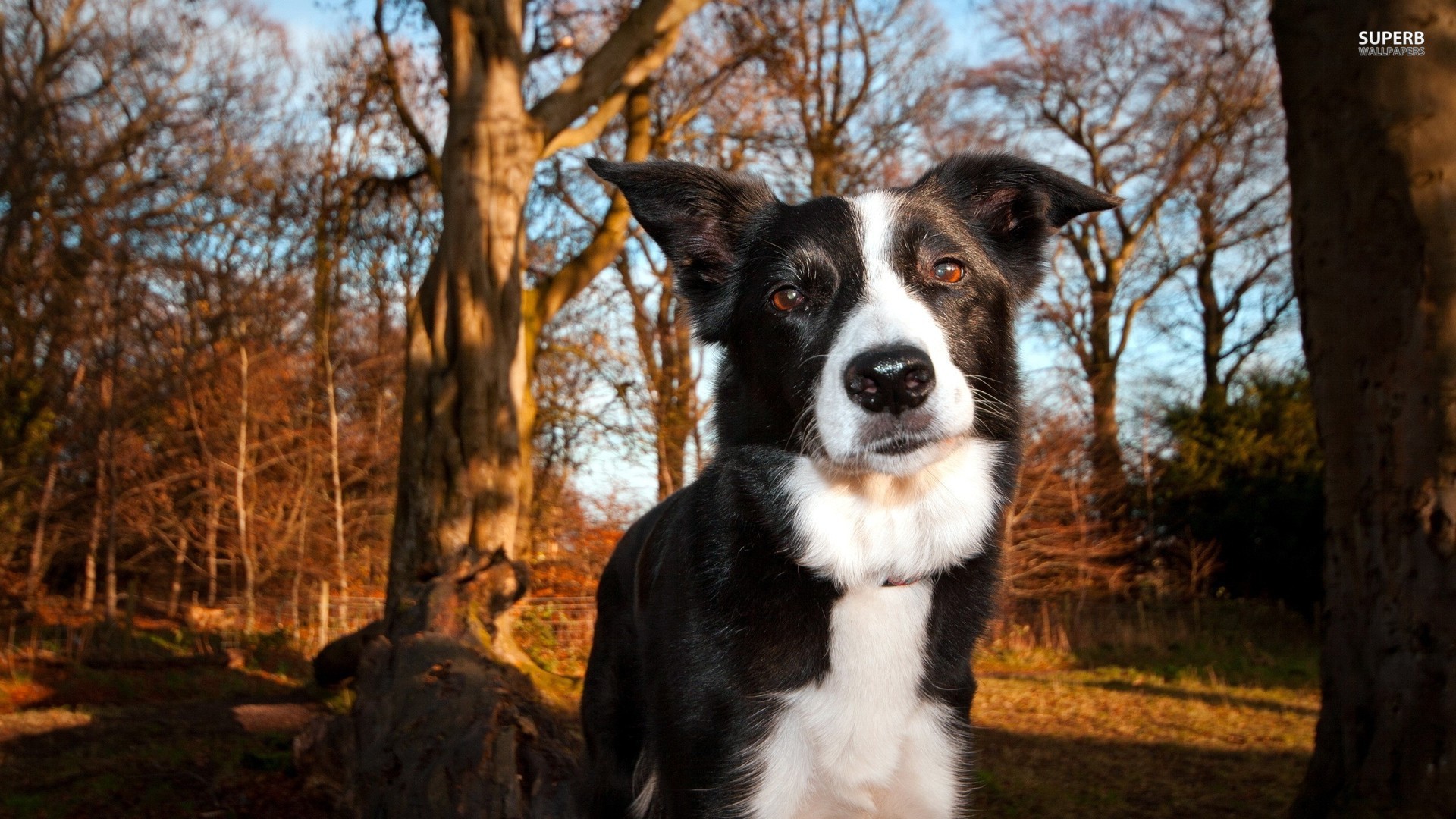 Wallpaper Beautiful Border Collie walking in the woods