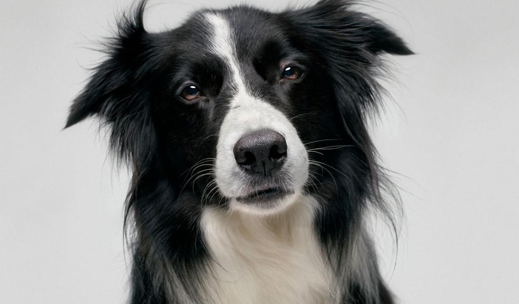 Wallpaper Portrait of a beautiful Border Collie on a gray background
