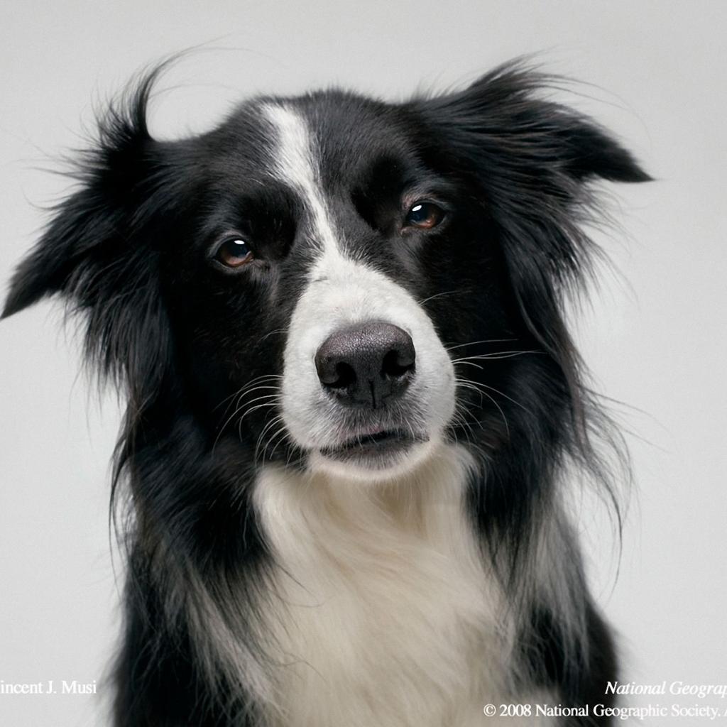 Wallpaper Portrait of a beautiful Border Collie on a gray background