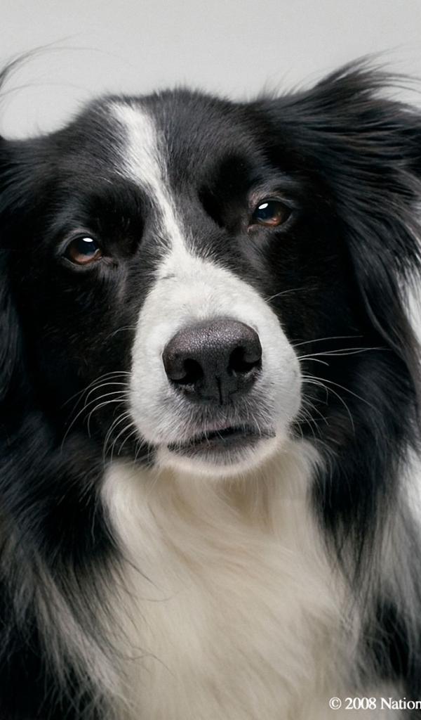 Wallpaper Portrait of a beautiful Border Collie on a gray background