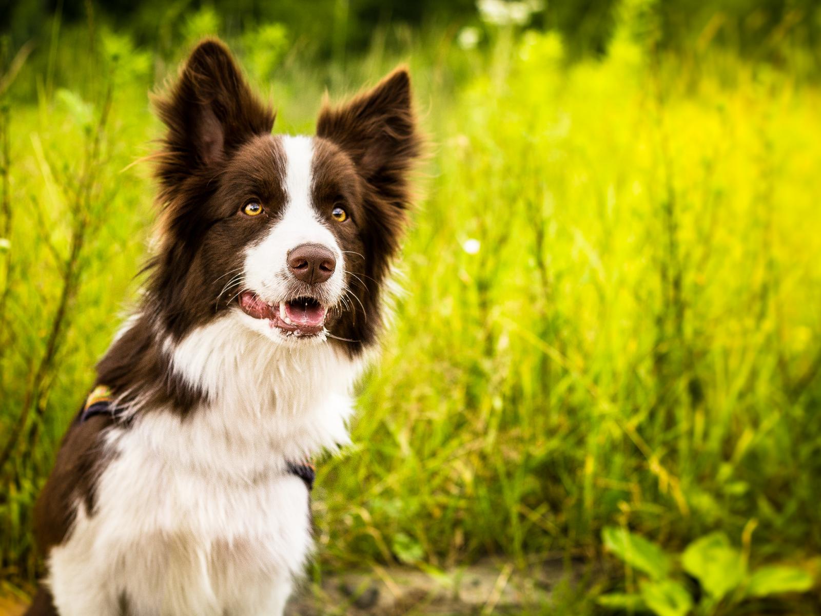 Wallpaper Border Collie on a background of green grass