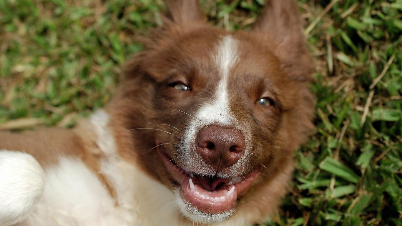 Wallpaper Happy Puppy Border Collie is running on the grass