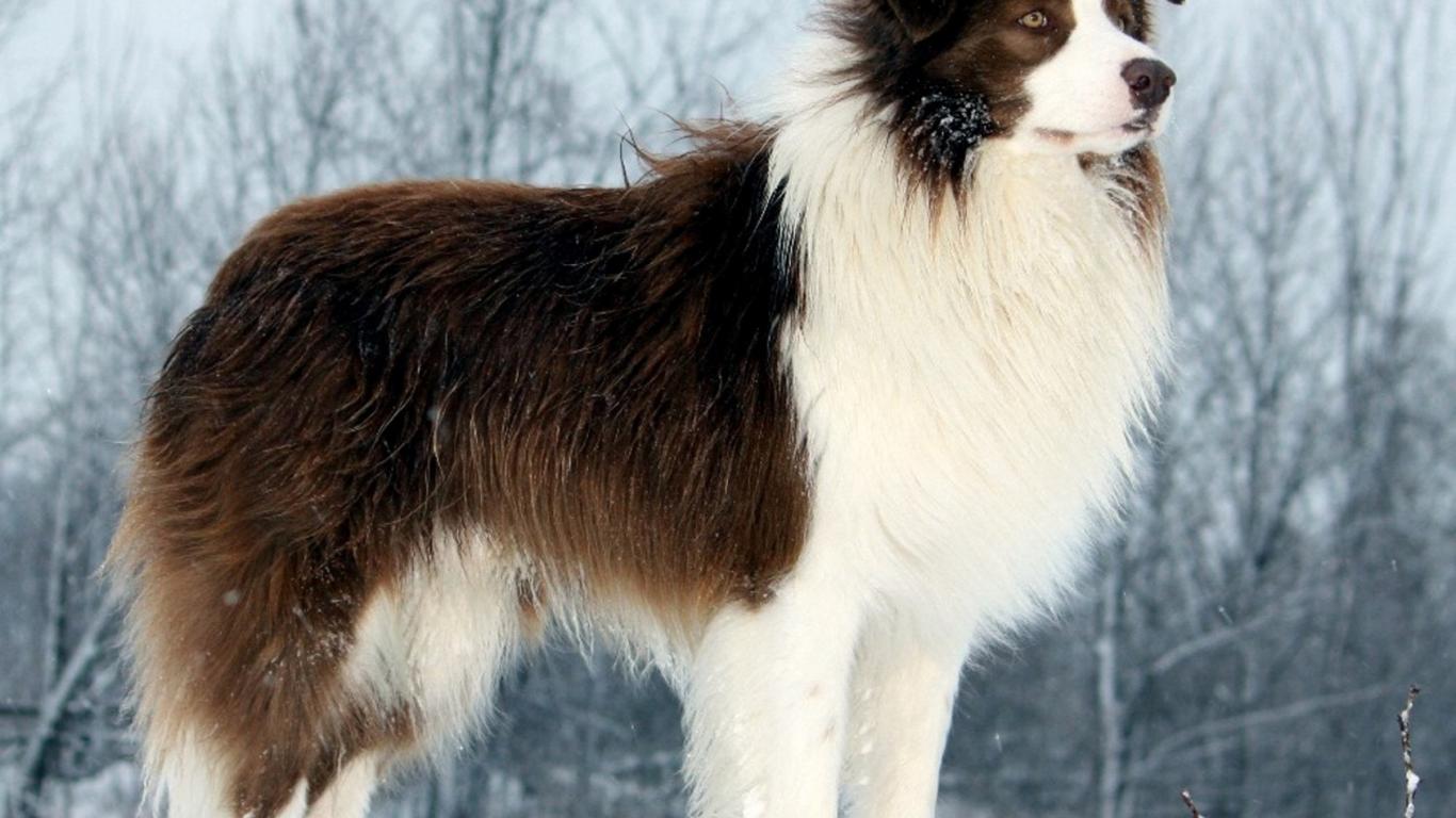 » Wallpaper Border Collie standing on a snowbank