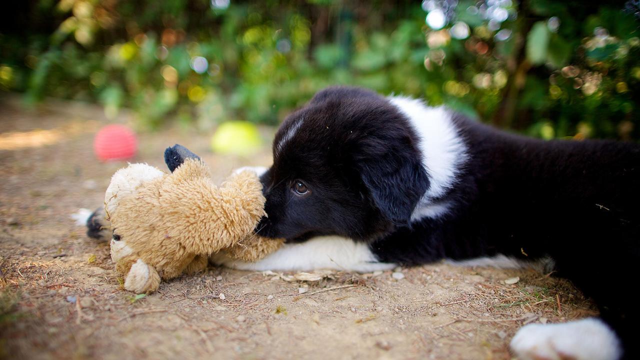 Wallpaper Border Collie puppy lying with toy
