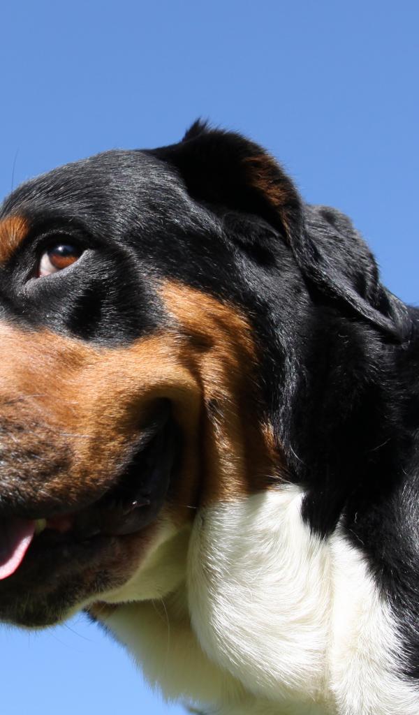 Wallpaper Greater Swiss Mountain Dog looks into the distance