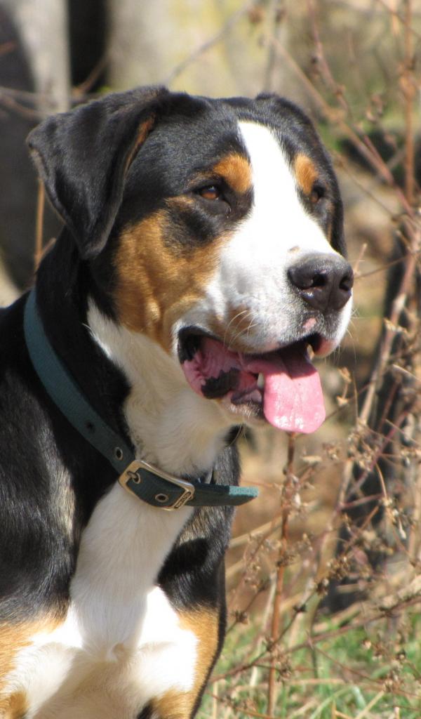 Wallpaper Greater Swiss Mountain Dog looks into the distance