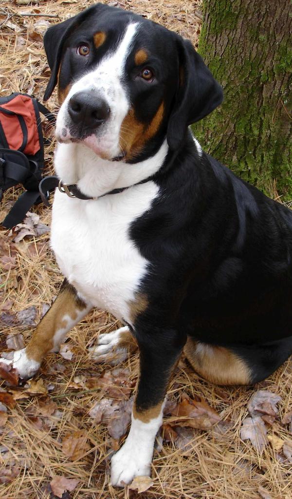 Wallpaper Greater Swiss Mountain Dog near a tree in autumn