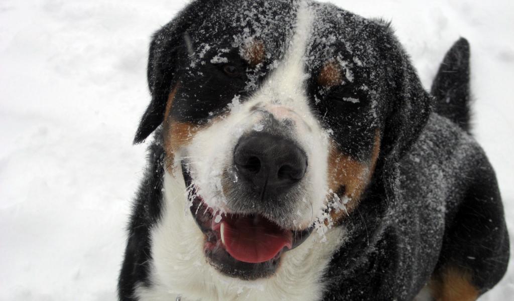 » Wallpaper Snowy great Swiss Mountain Dog