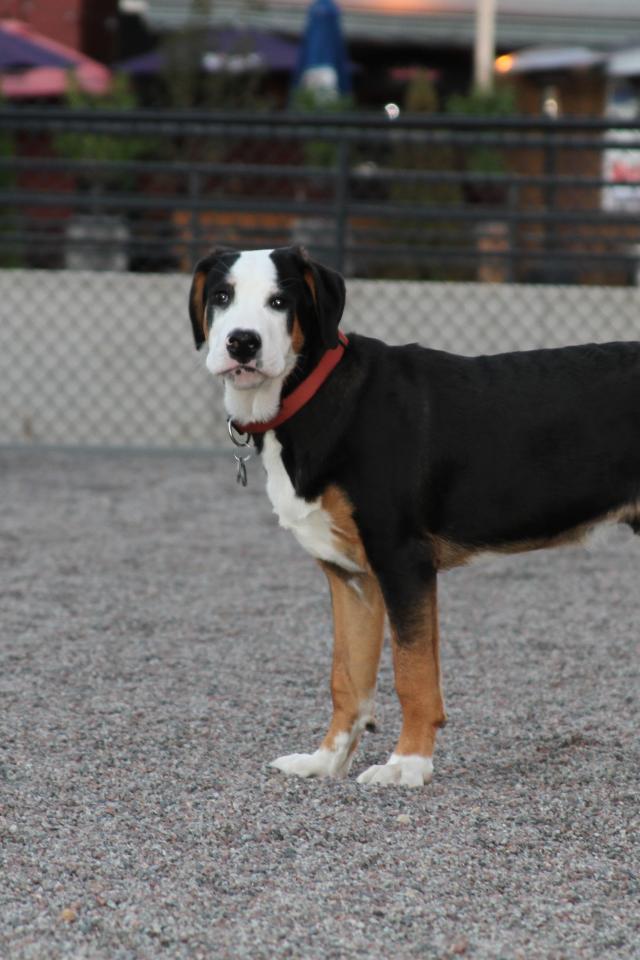 Wallpaper Greater Swiss Mountain Dog behind a fence