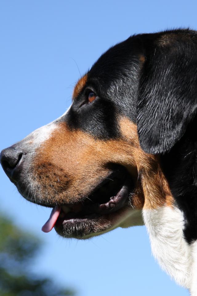 Wallpaper Greater Swiss Mountain Dog on a sky background